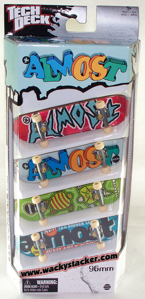 CollectibleTech Deck96mm Finger Board Skateboard ALMOST SKATE TEAMSkateboard 4 PackFeatures:diecast metal trucksreal grip taperisers ~ bushingsadjustable kingpintool ~ extra partsremovable wheelsages 9+SOLD OUT