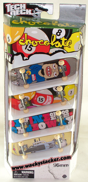 CollectibleTech Deck96mm Finger Board Skateboard CHOCOLATE SKATE TEAMSkateboard 4 PackFeatures:diecast metal trucksreal grip taperisers ~ bushingsadjustable kingpintool ~ extra partsremovable wheelsages 9+SOLD OUT