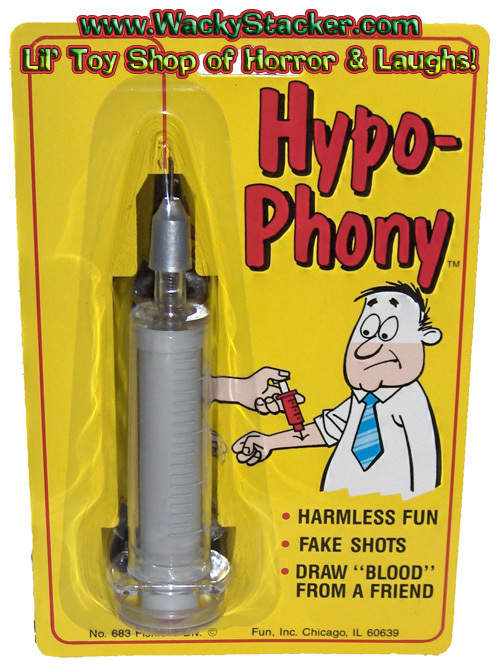 Hypo-Phony NeedleHarmless FunFake ShotsDraw Blood from a FriendSpring LoadedRetractable Needlew/ Blood $9.99 eachIN STOCK