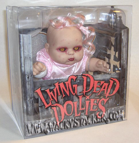 Living Dead Dolls Series One 10" Living Dead Dollies Lulu. Lethally deviant, these wee ones are sure to scare the monsters out from under your beds. Each doll comes with a removable outfit and diaper and is packaged in its own upside down crib (that does double duty as a cage to keep the little one contained) SOLD OUT Please Read Shipping InfoBefore Your Purchase