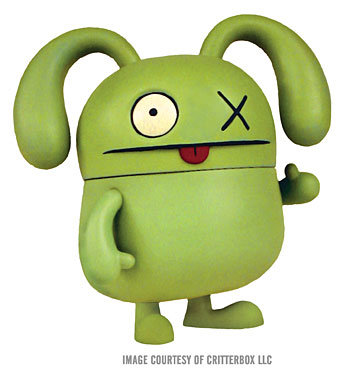 Cinko is the Uglydoll of the deep. Keep him away from water though…he can't swim! Cinko is a little opinionated, but has a funny sense of humor. He likes to waddle around and stick his tongue out at everything and everyone. Because this is not polite for people to do Cinko makes the perfect pal! Instead of sticking your tongue out at folks, just hold up Cinko and let him do it for you! Cinko looks up to his older brother, Target, and follows him around wherever he goes. If you tape a red button to your forehead, Cinko will follow you too!
